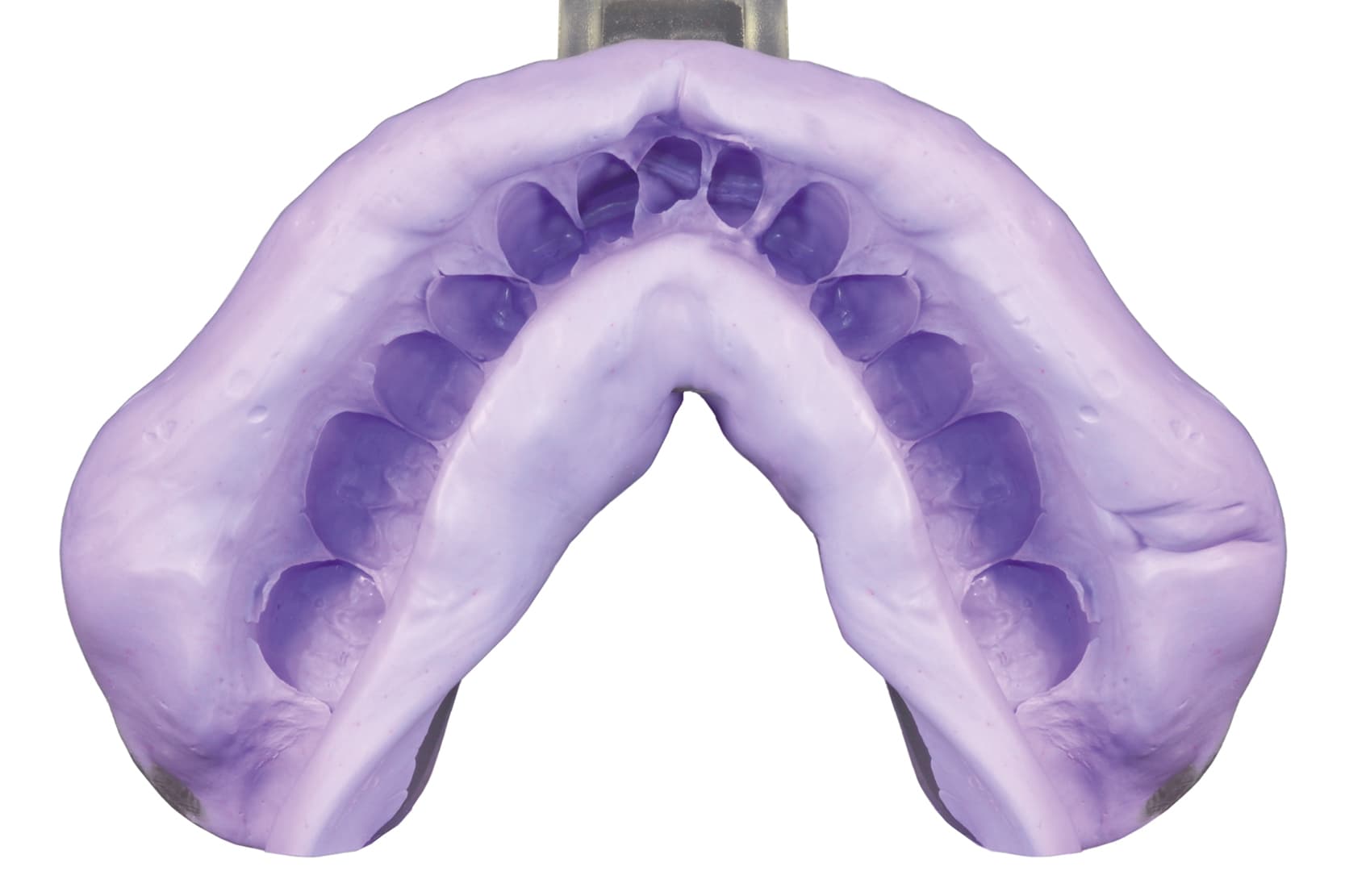 Un ulteriore limite è la bassa resistenza allo strappo, che comporta un elevato rischio di lacerazioni quando si rimuove il materiale in presenza di sottosquadri o zone interdentali (9). Anche la fase di disinfezione rappresenta una criticità: l’immersione prolungata in soluzioni disinfettanti può compromettere la precisione dimensionale e la qualità superficiale del modello ottenuto (10,11).